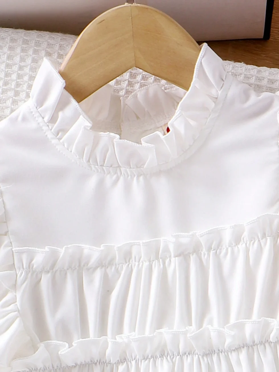 Detalles: Botón, Dobladillo sin costuras, Volante