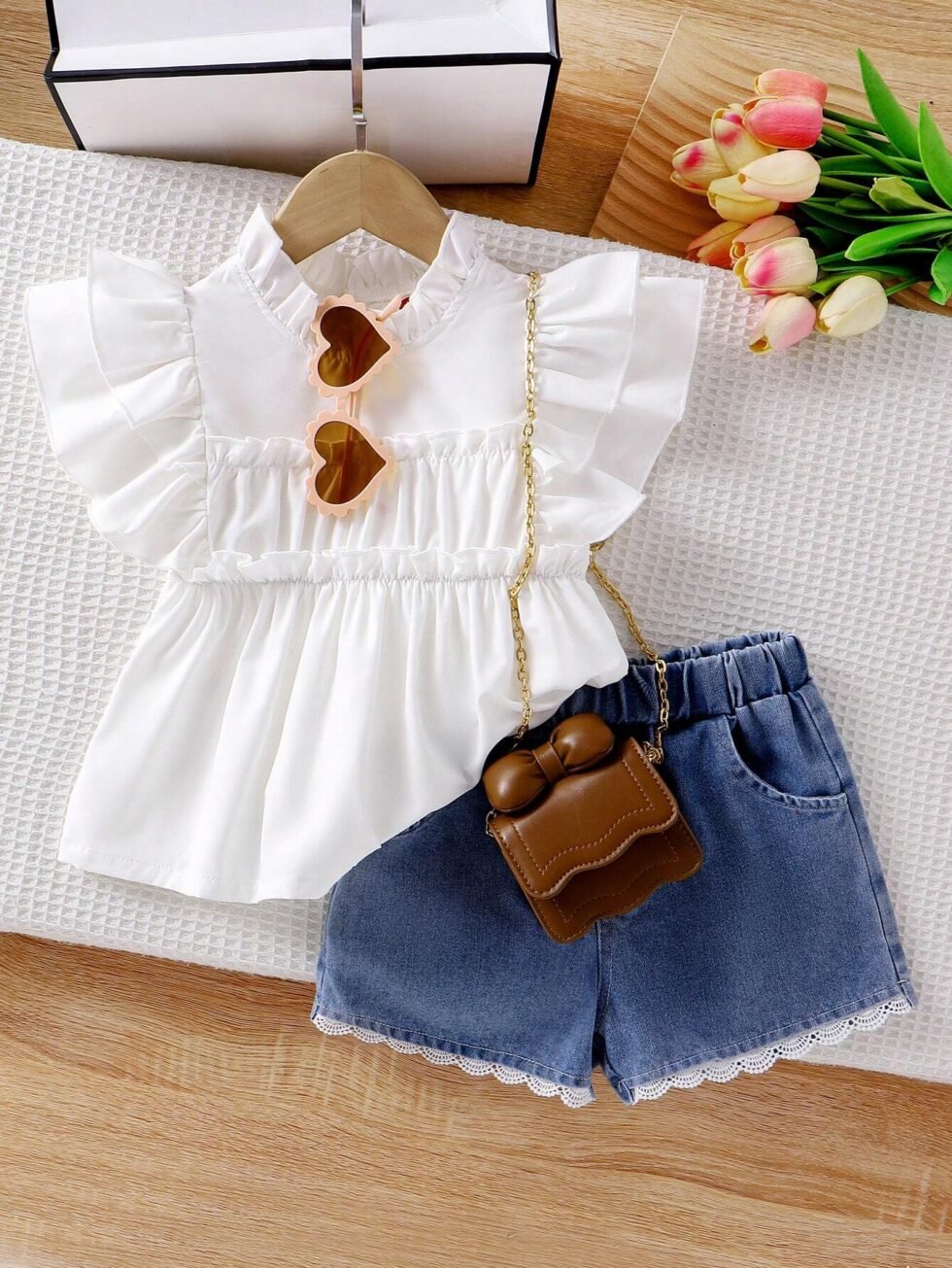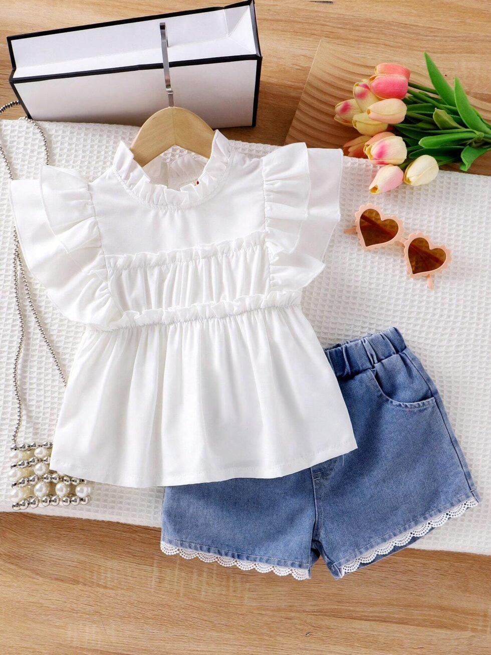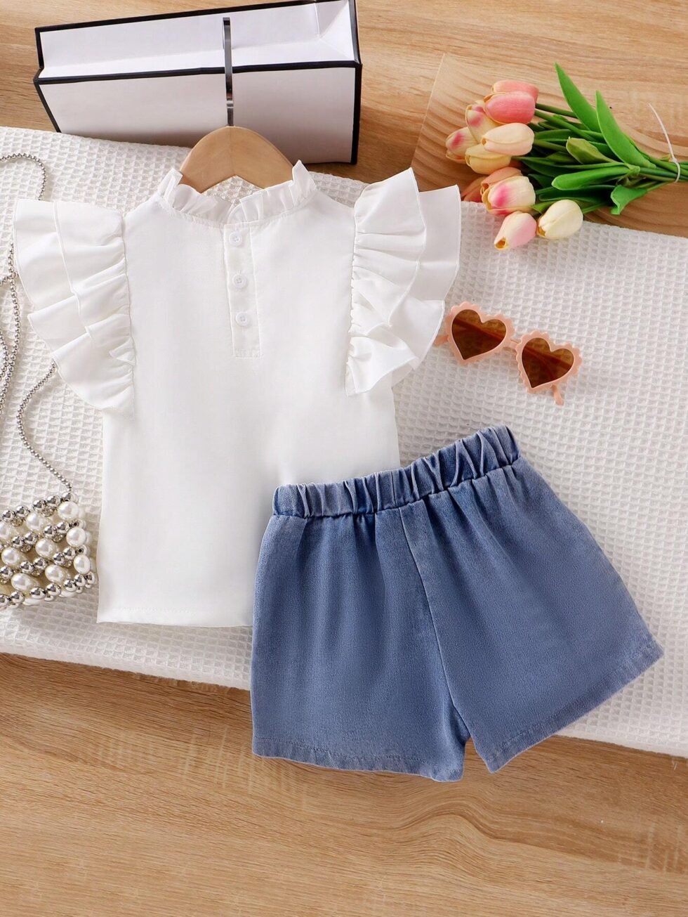 Conjunto de top sin mangas con volantes y short vaquero