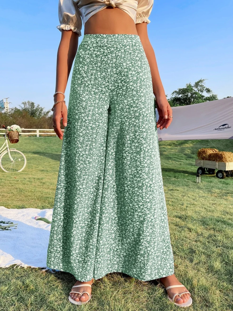 Pantalón de pierna ancha con estampado floral de talle alto
