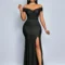 Vestido ajustado de hombros descubiertos abertura en muslo y espalda descubierta