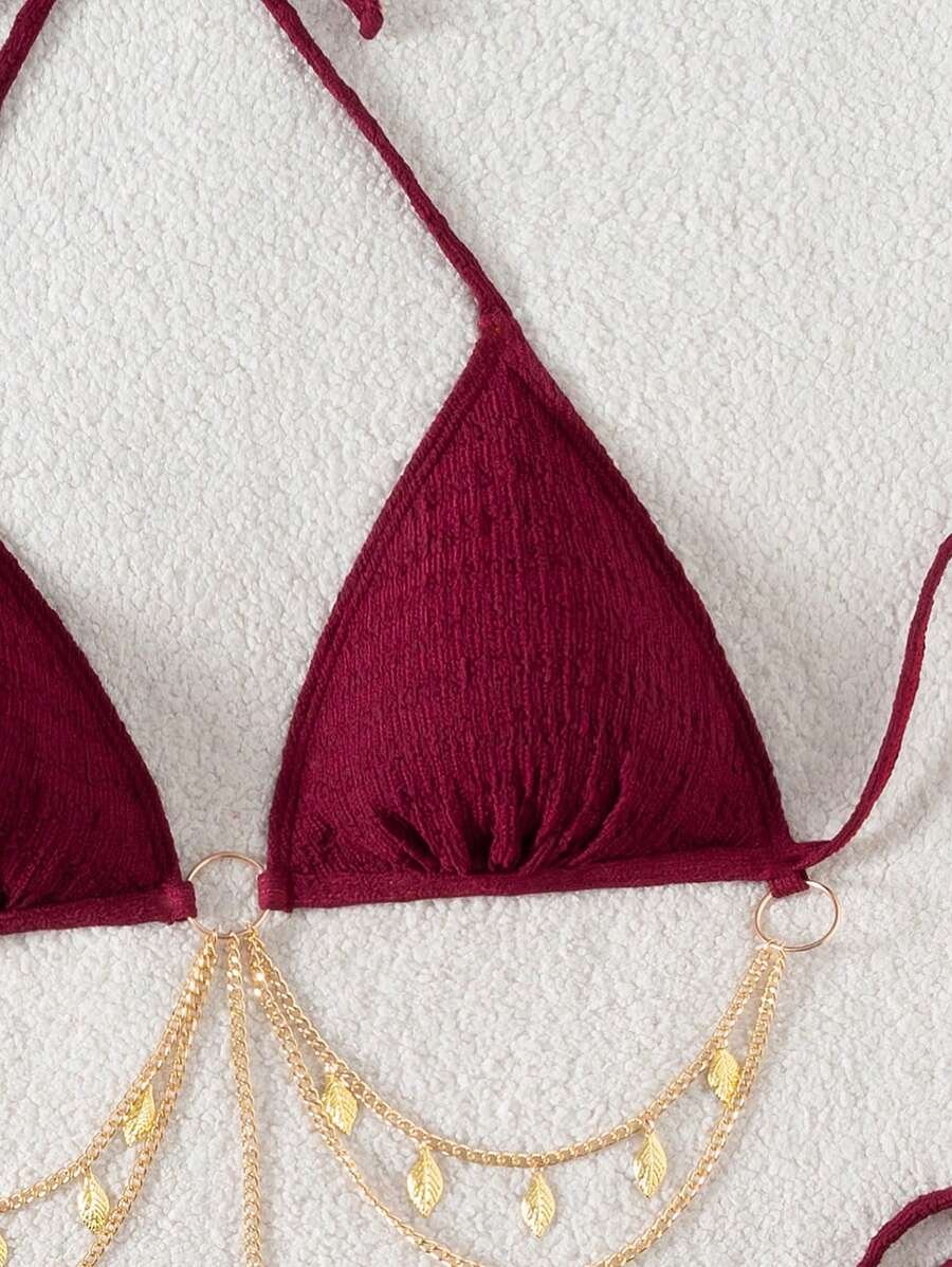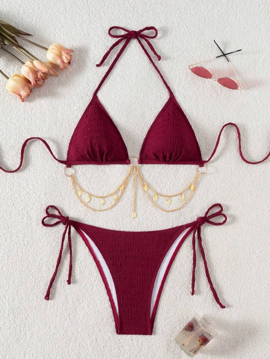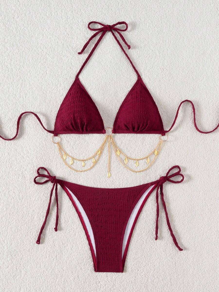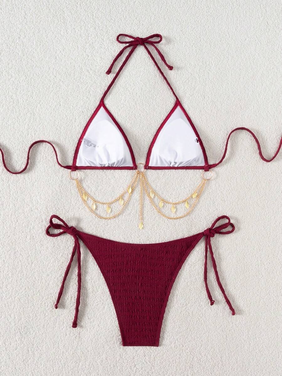 Traje de baño de 2 piezas con detalle de cadenas y conchas