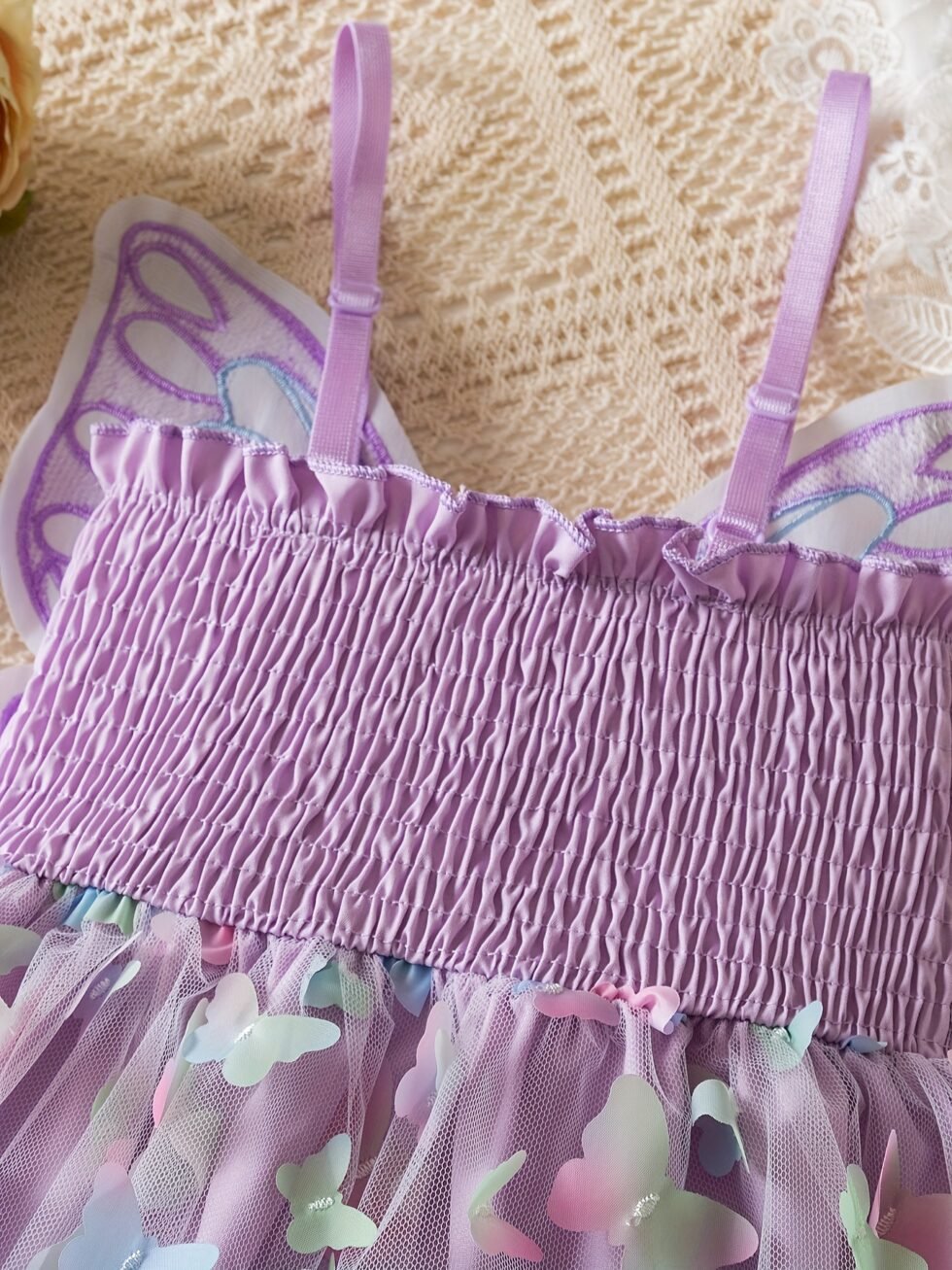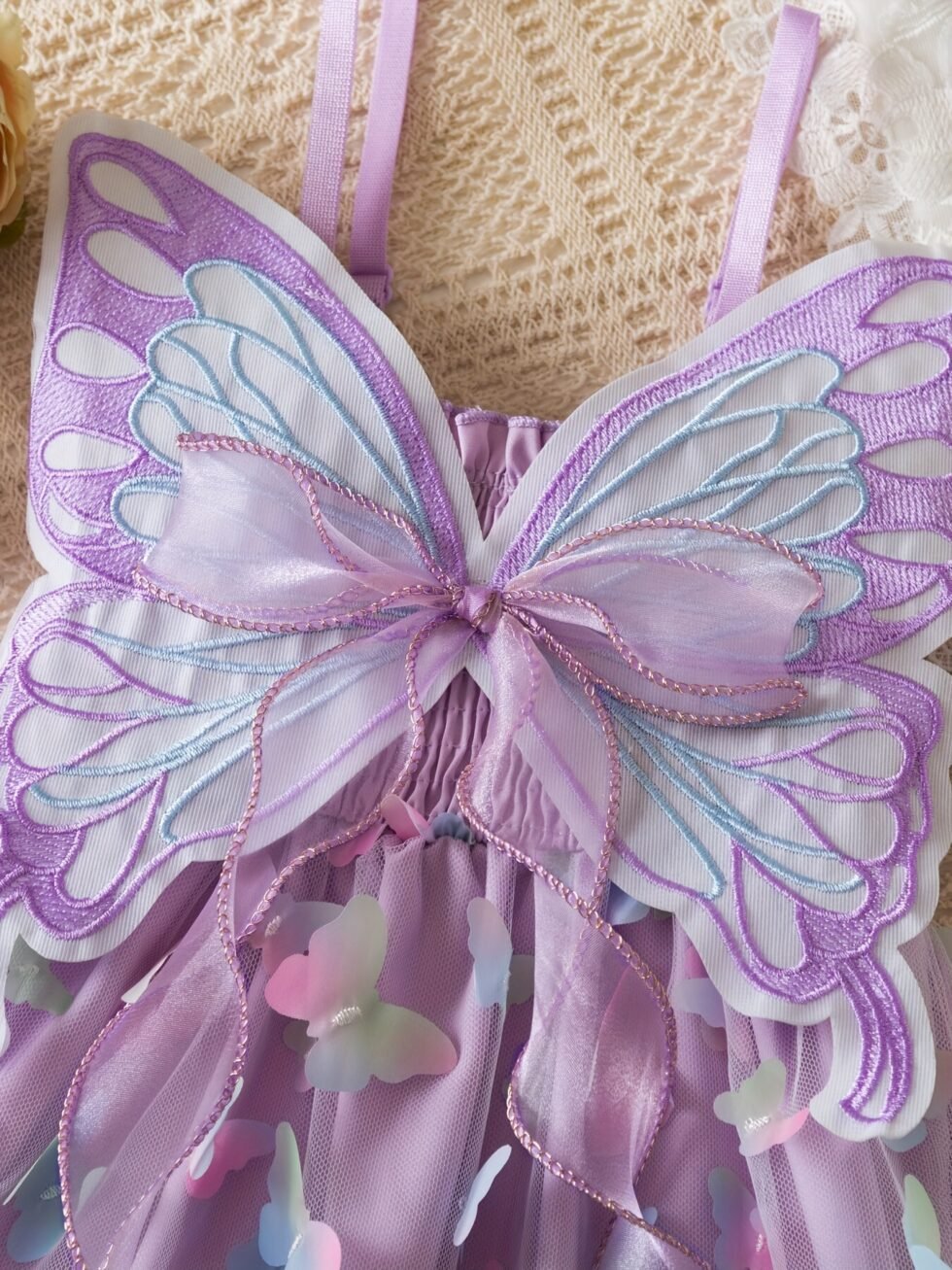 Detalles de mariposa en falda y espalda