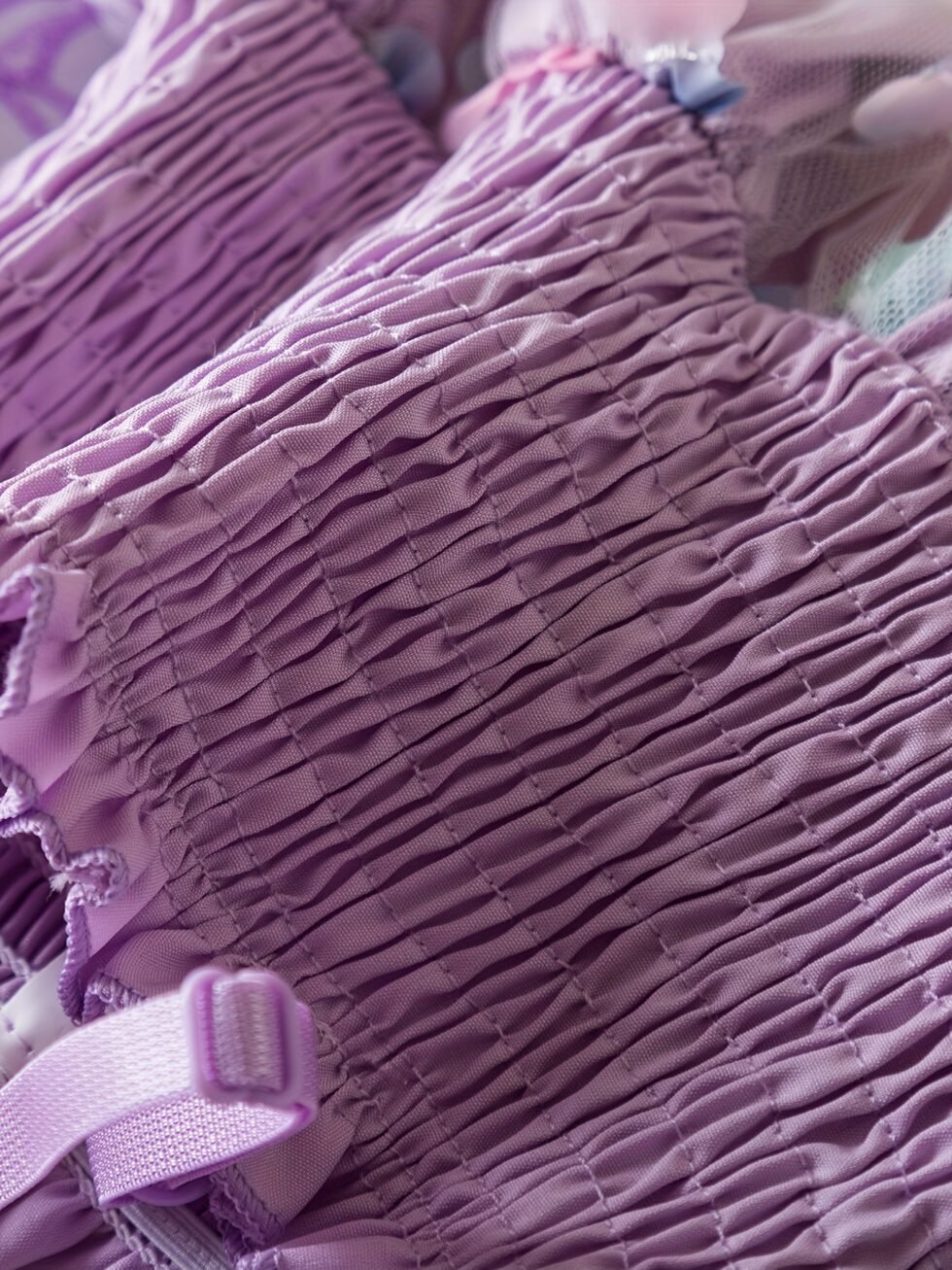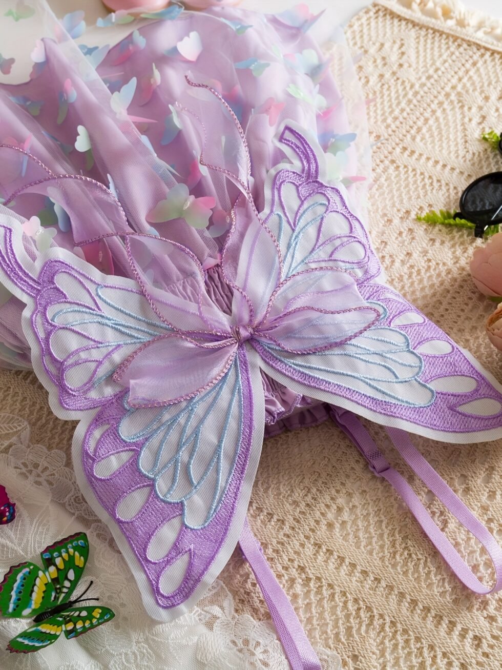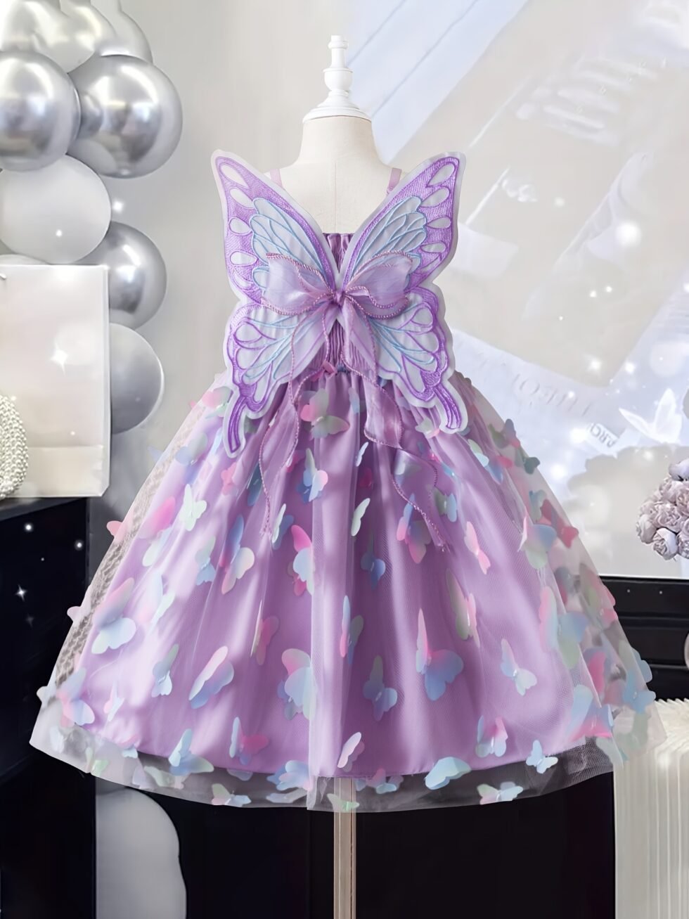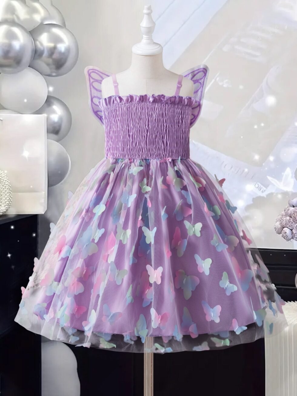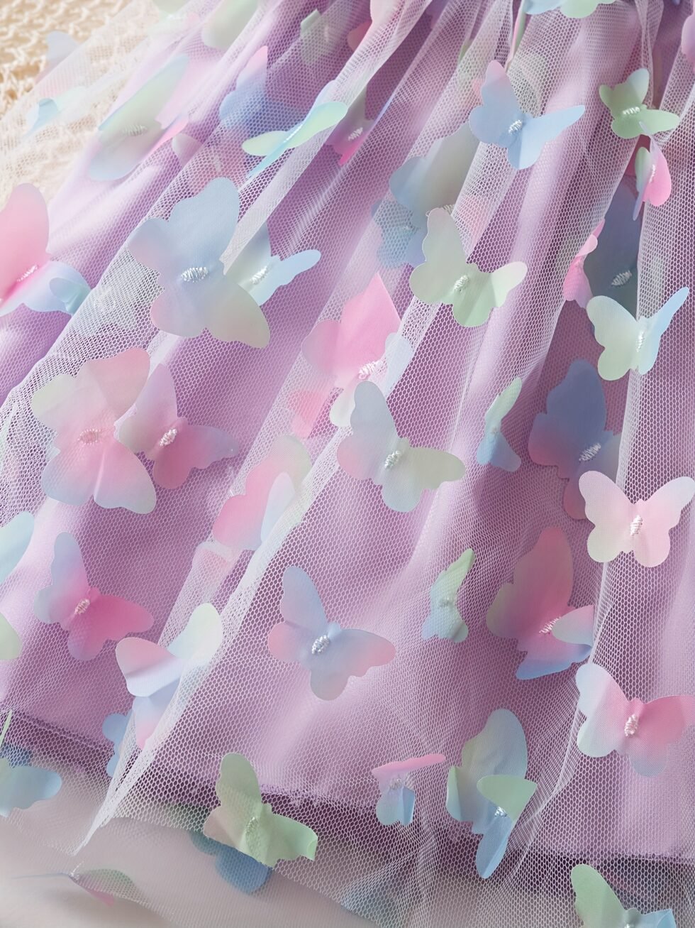 Vestido casual de niña con mariposa en espalda y falda morado