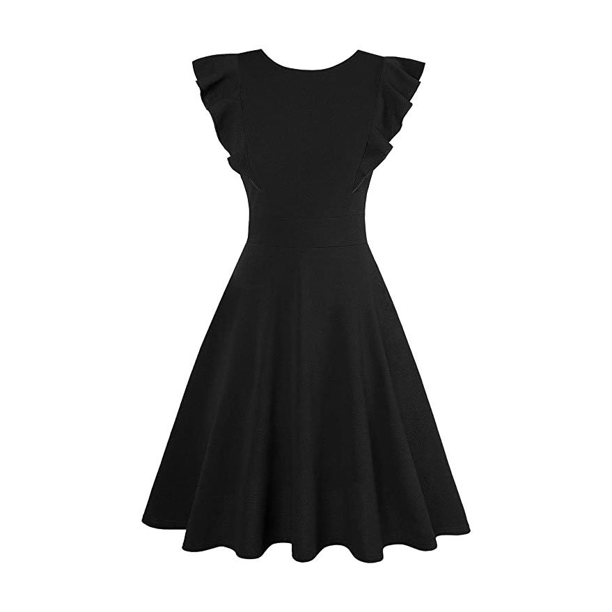 Vestido de cóctel estilo vintage con volantes acampanado