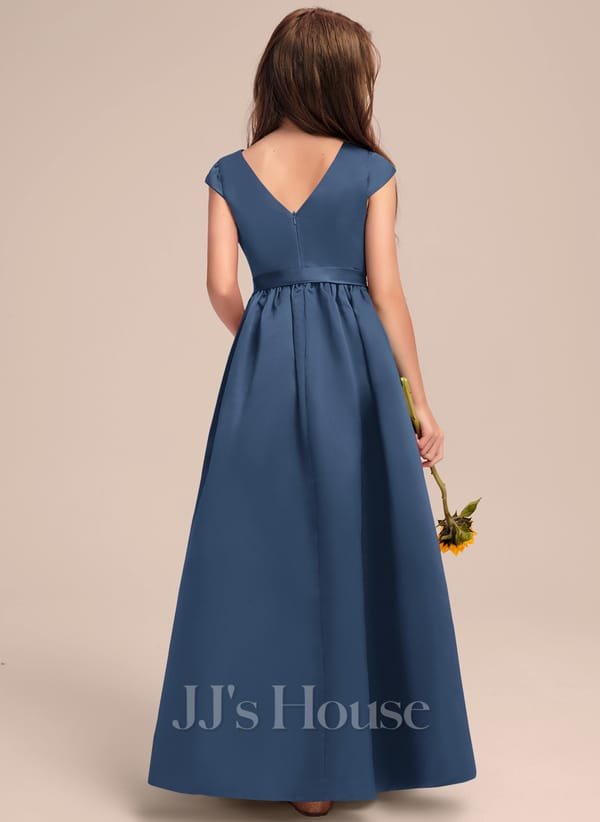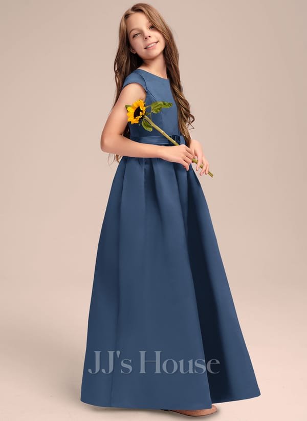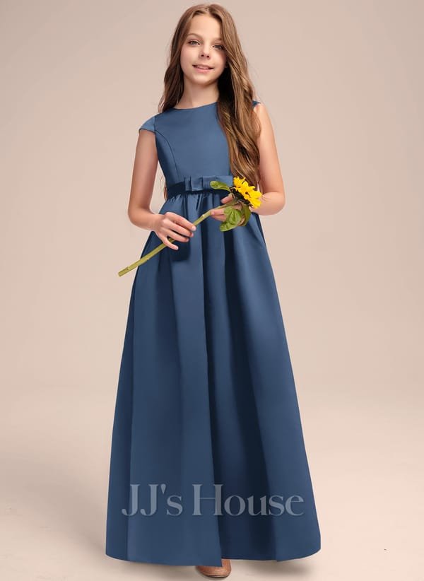 Vestido de niña largo elegante con lazo y espalda V