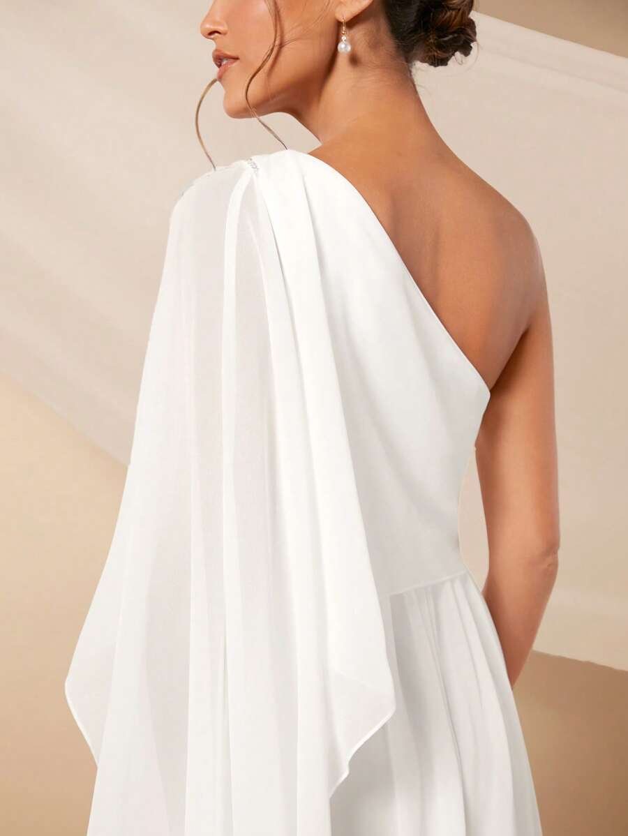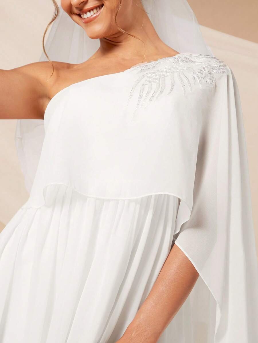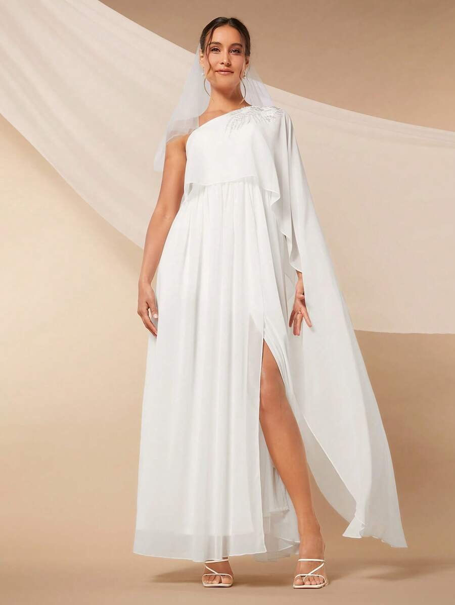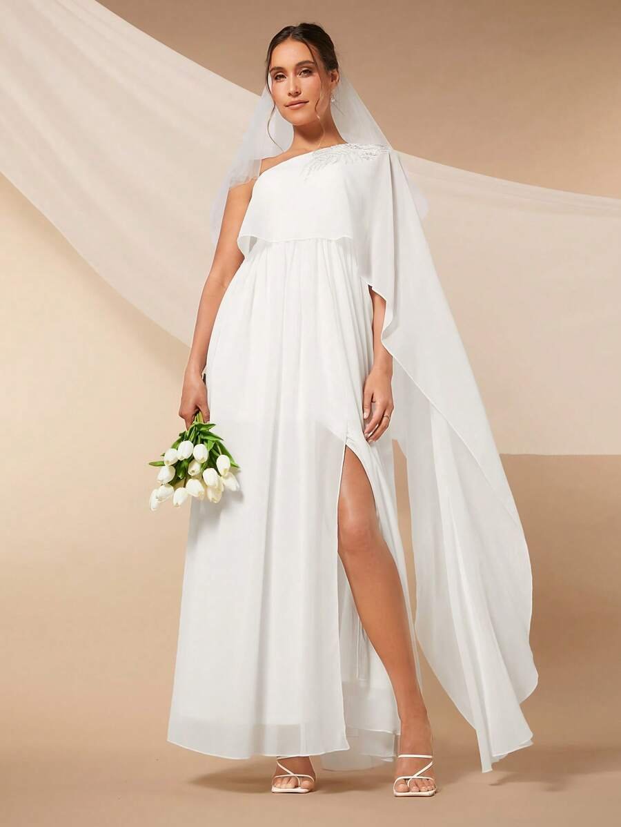 Vestido de novia con lentejuelas en hombro abertura en muslo