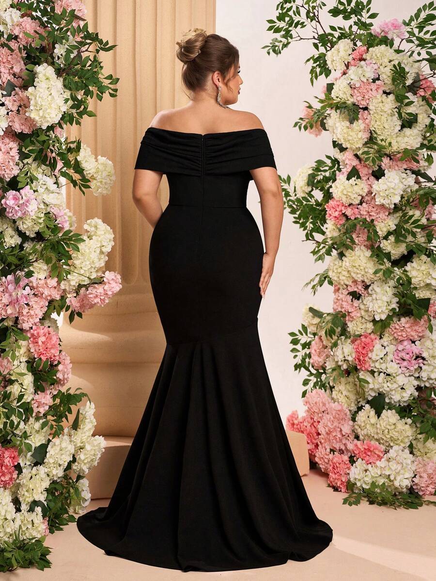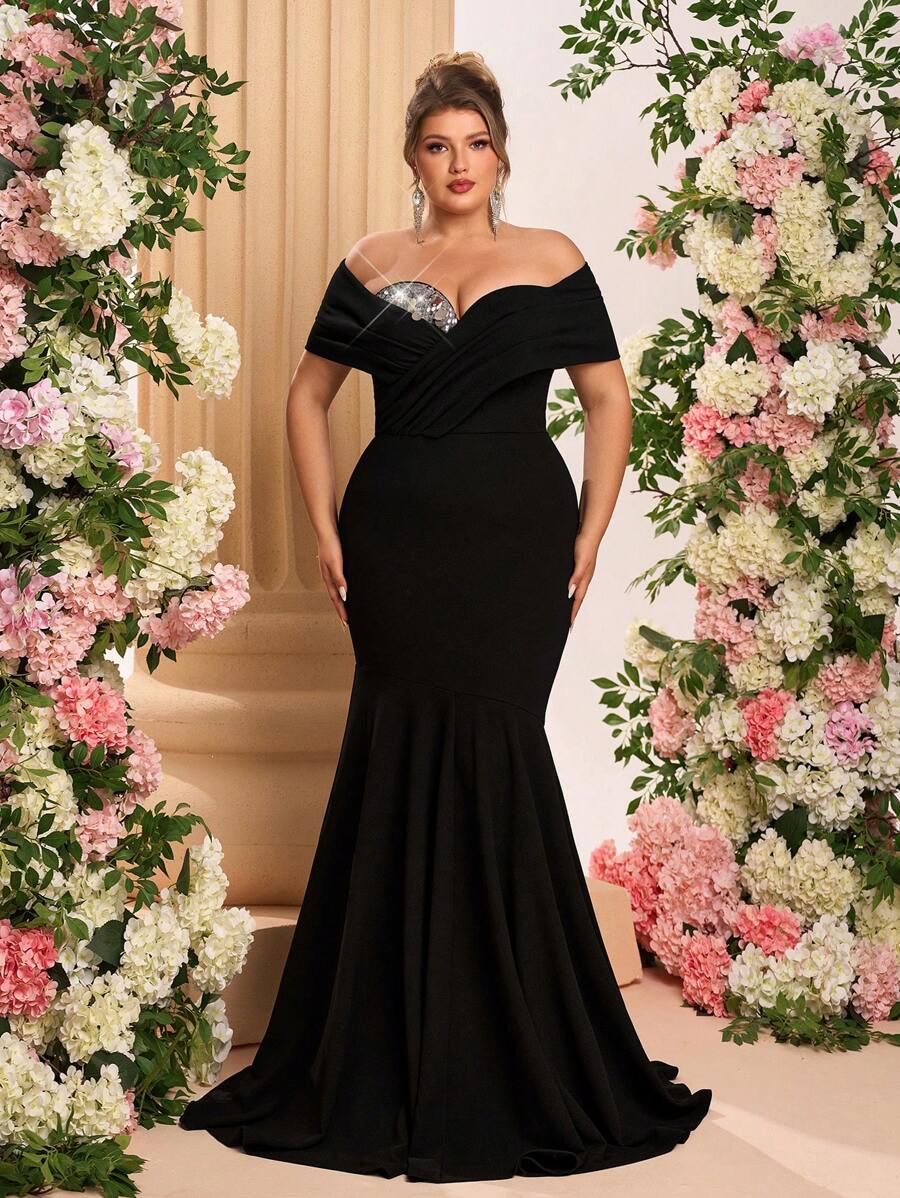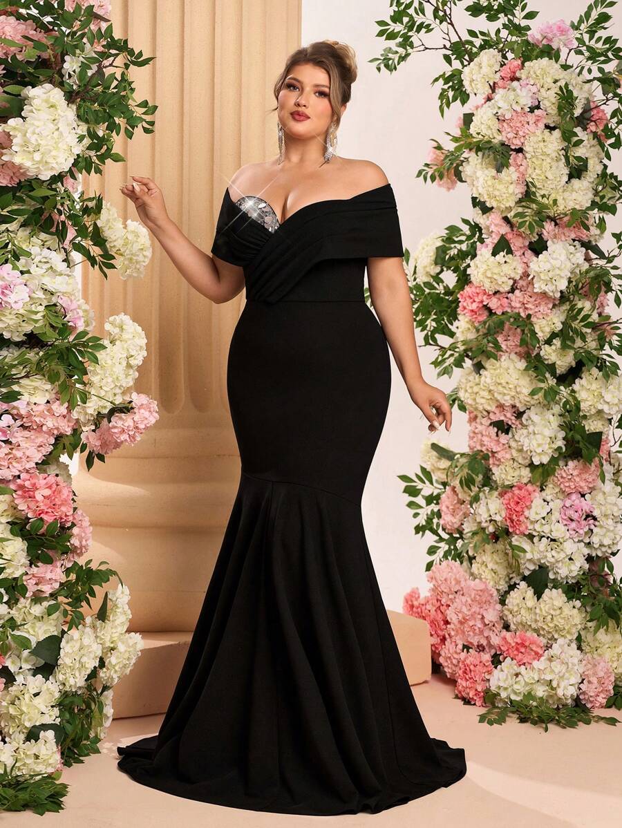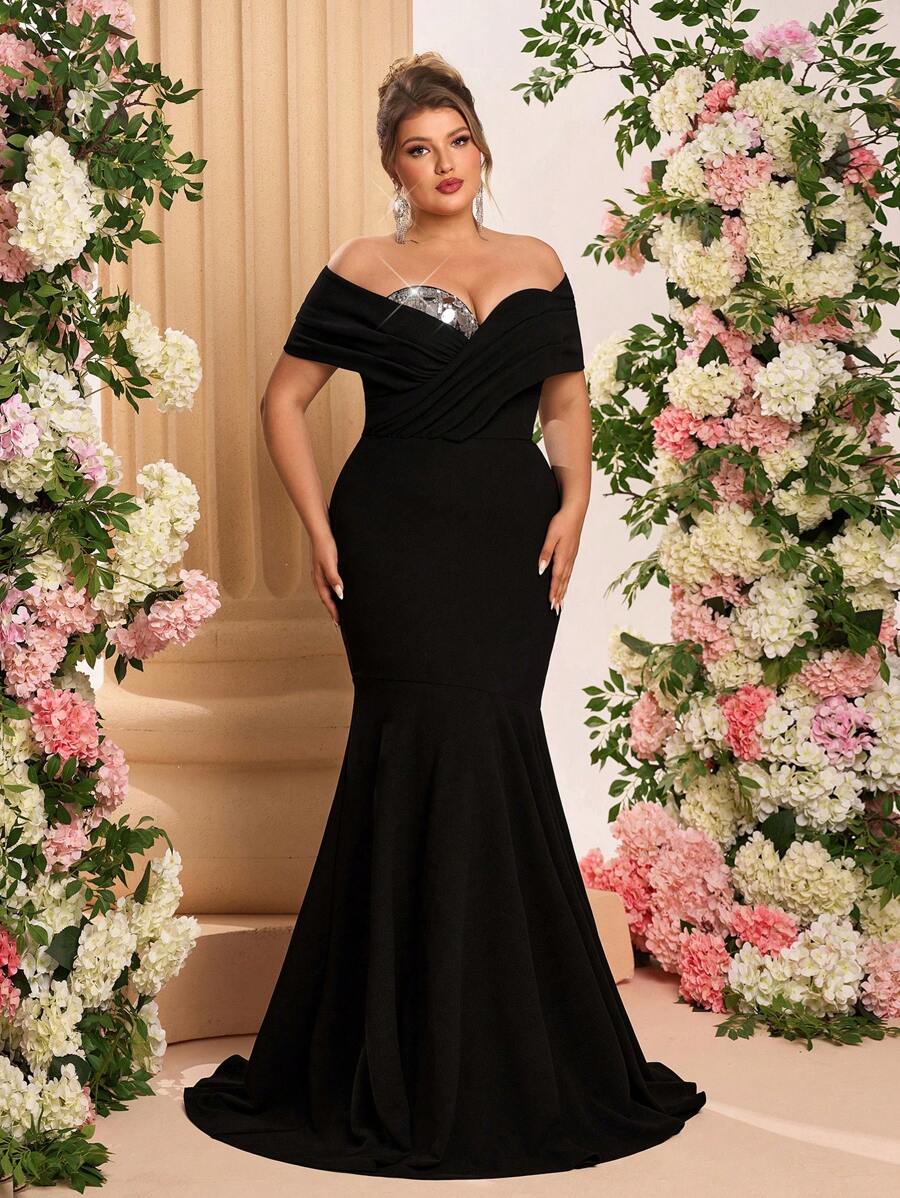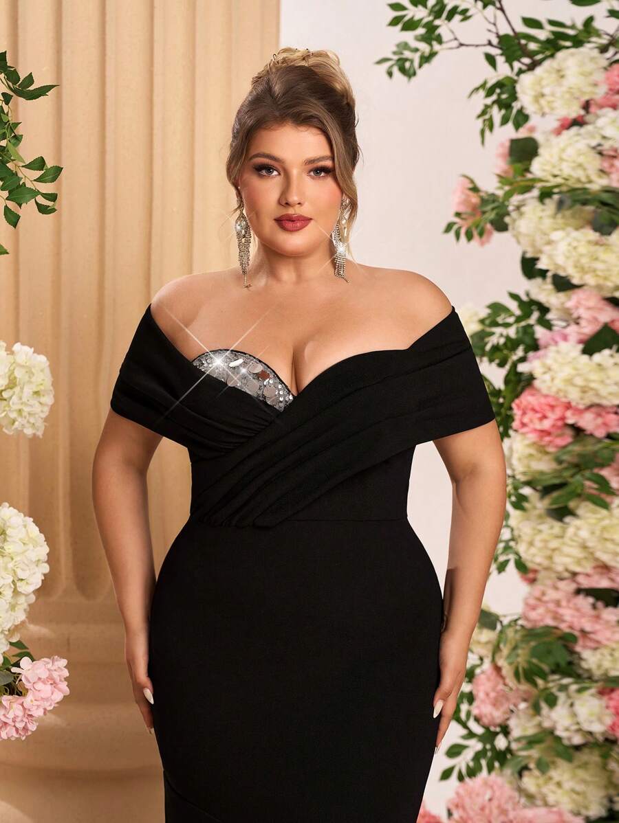 Vestido elegante hombros descubiertos con lentejuelas en pecho