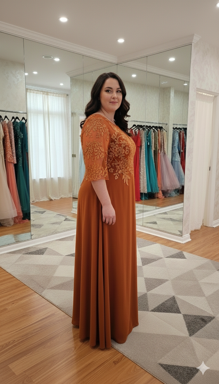 Vestido elegante talla plus con encaje y apliques