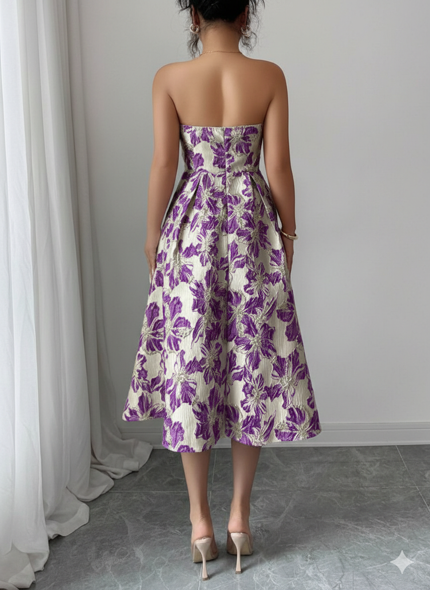 Vestido Floral Midi Strappless