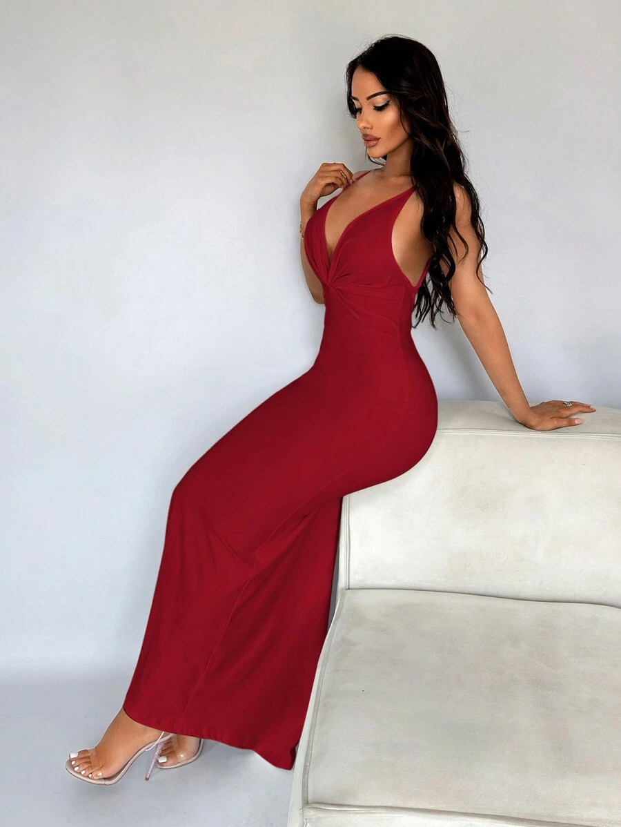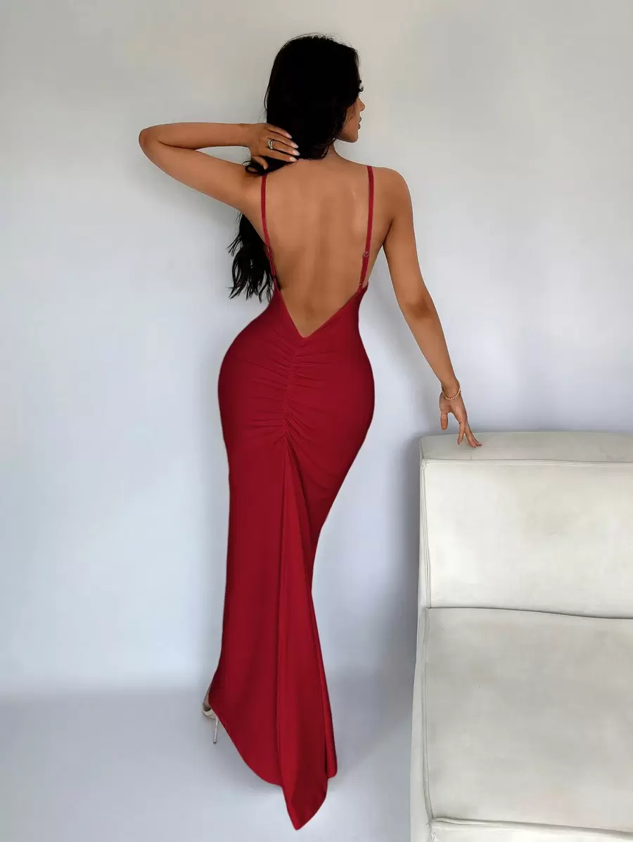 Vestido formal sexy de tirantes y espalda baja