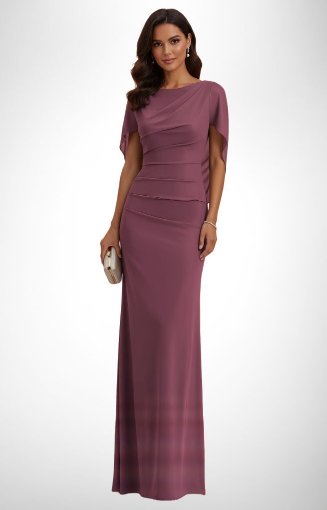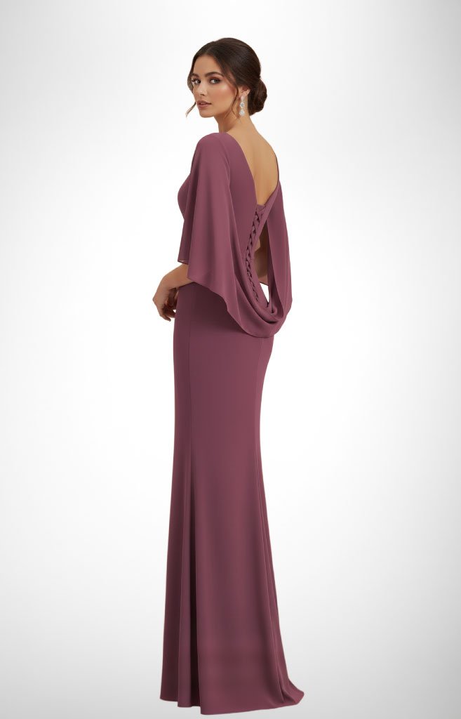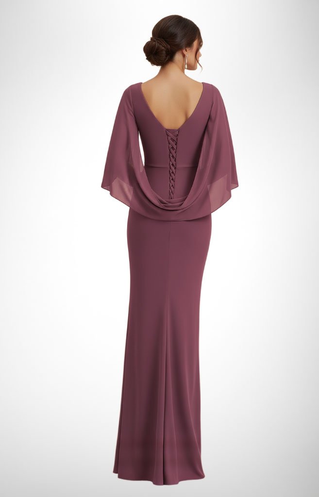 Vestido largo ajustado corte sirena con capa y corsé