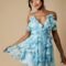 Vestido mini de gasa con cuello en V, estampado floral, ajustado y acampanado