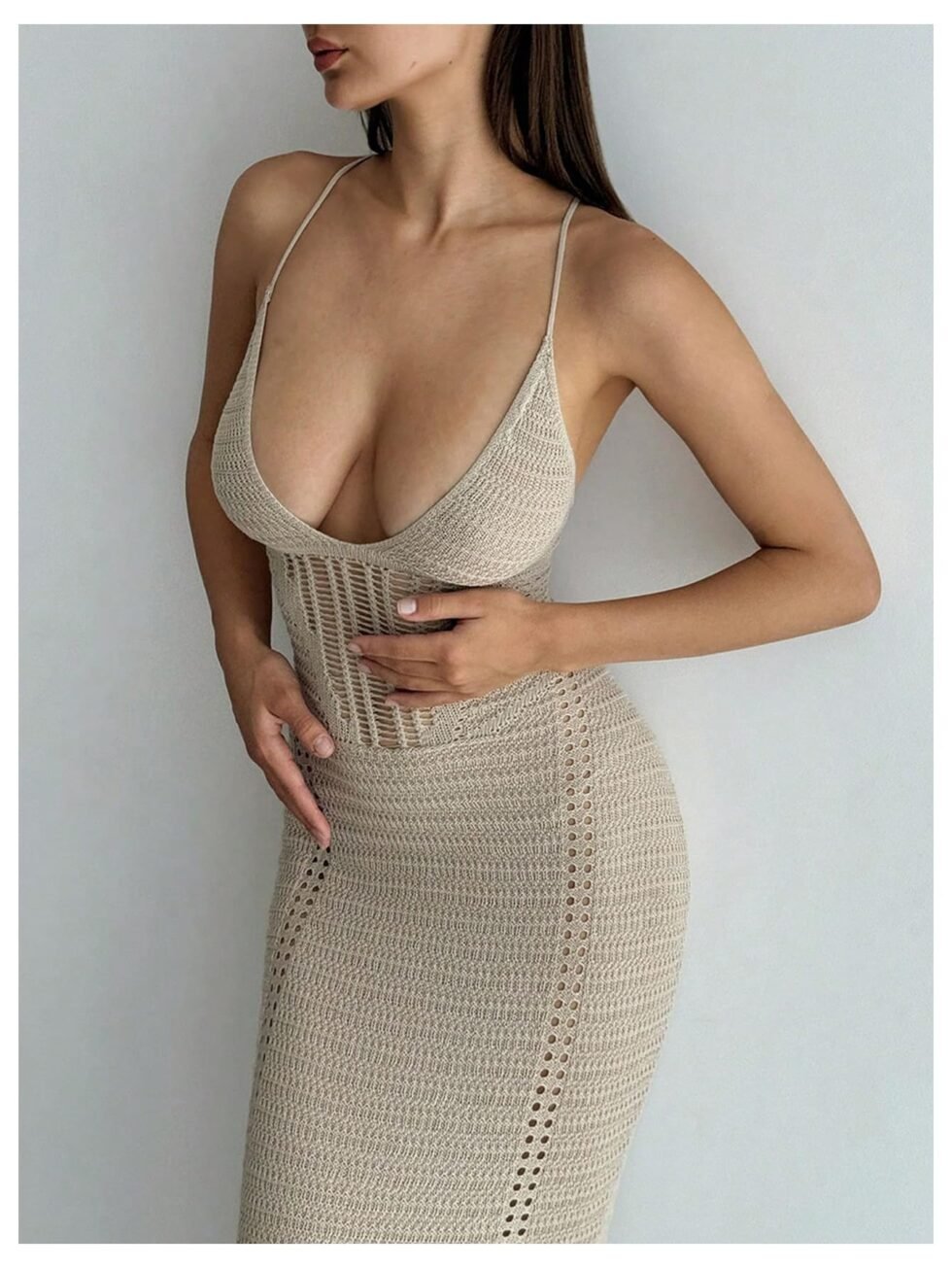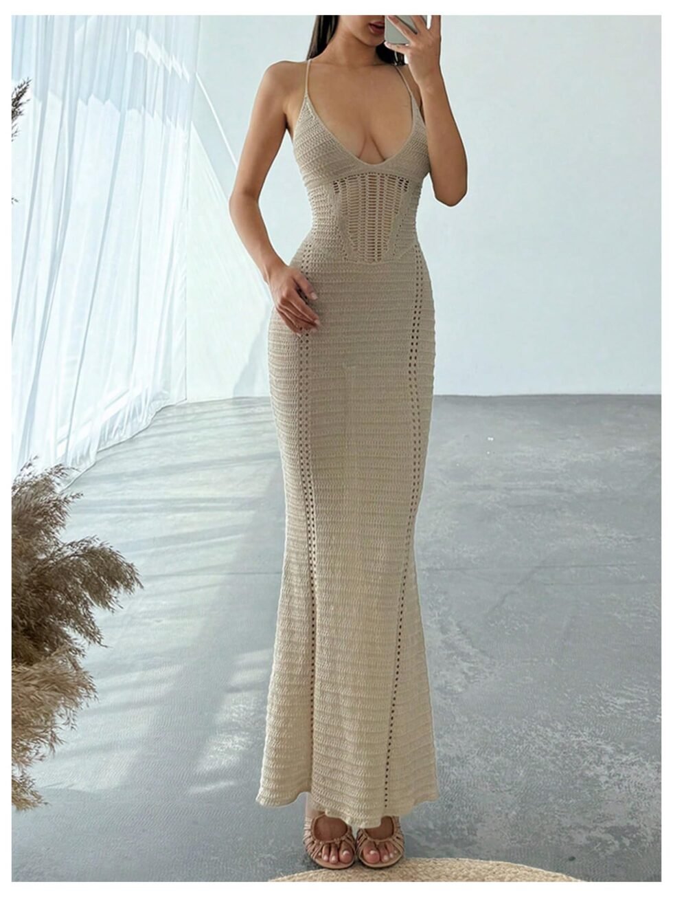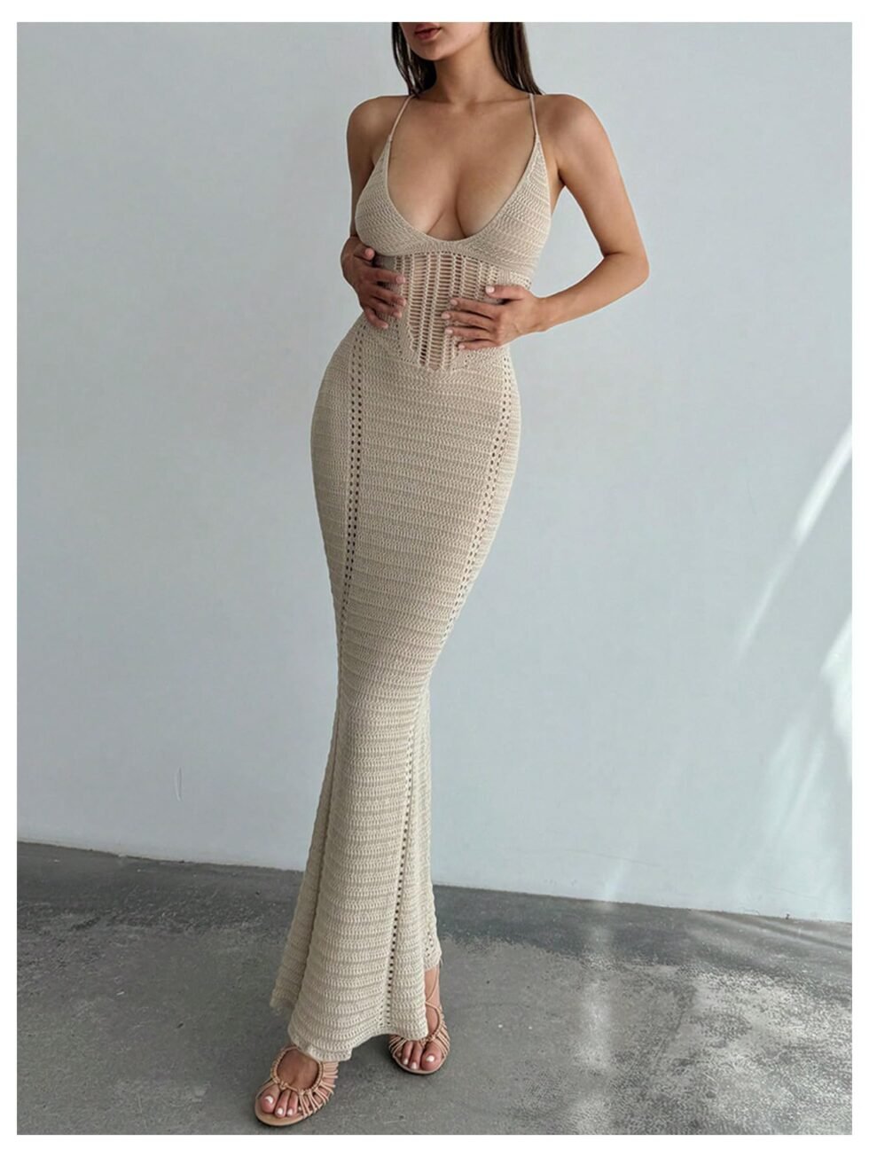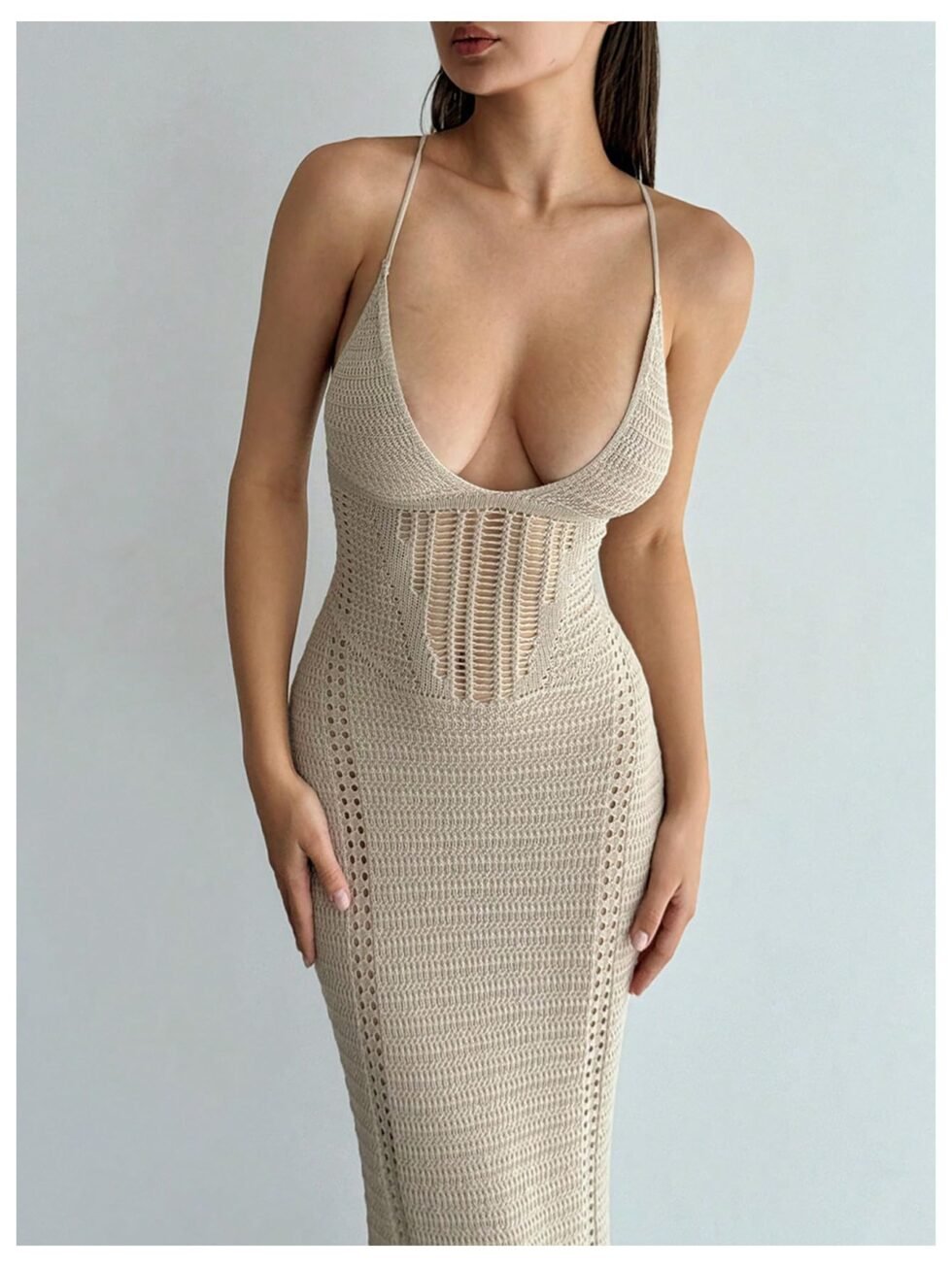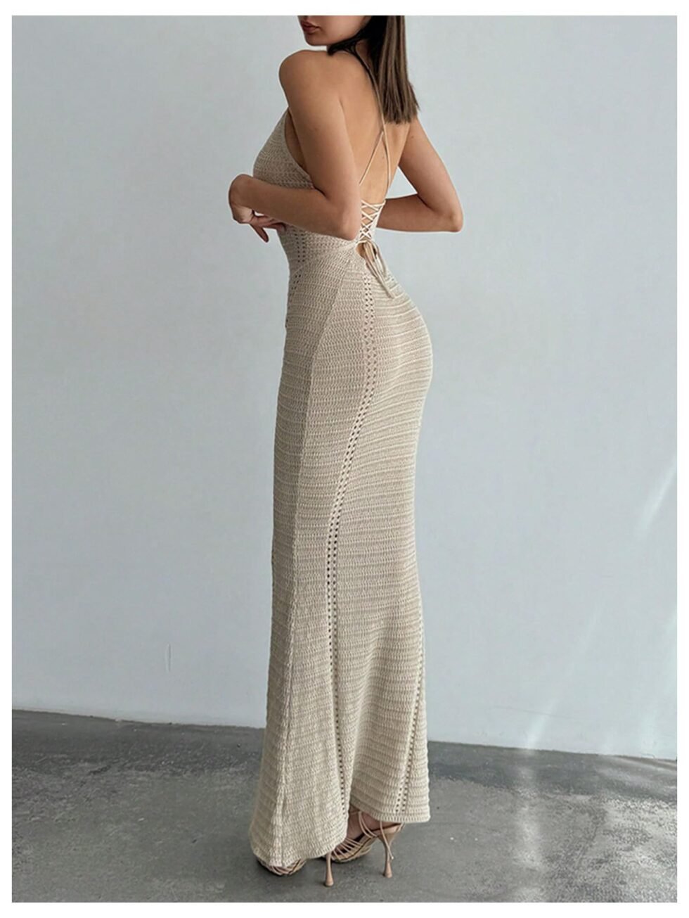 Vestido tejido de playa largo con espalda cruzada